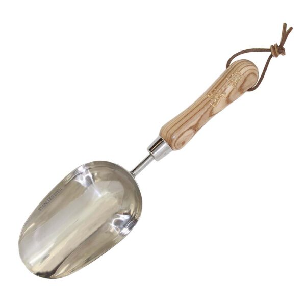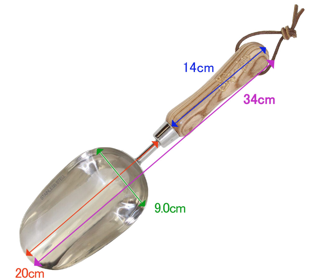 不繡鋼本體堅固耐用不生鏽,實木製木柄握把經防腐處理。