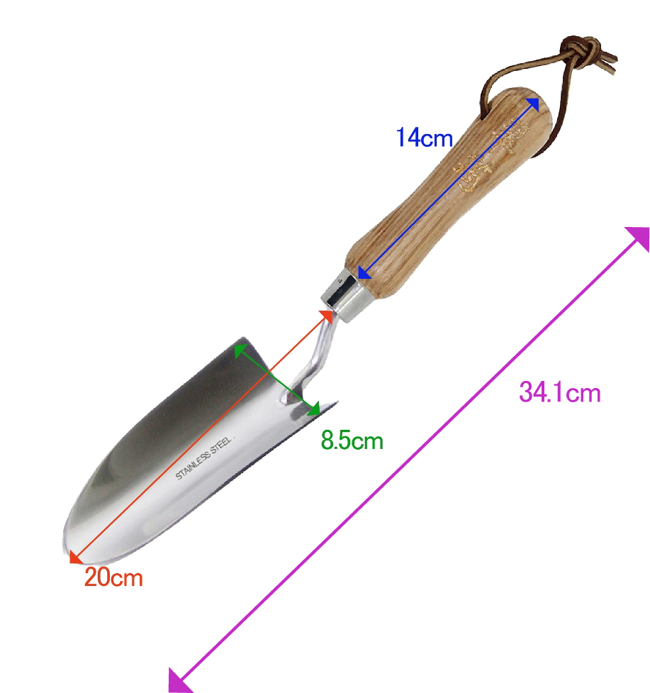 不繡鋼本體堅固耐用不生鏽,實木製木柄握把經防腐處理。